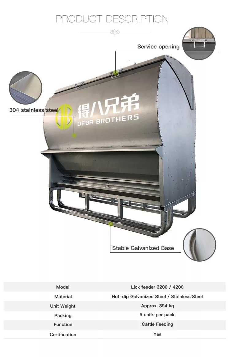 5. நடைமுறை ஆதரவு வடிவமைப்பு: பக்க அணுகல் துறைமுகங்கள் உள் சுத்தம் மற்றும் பகுதி மாற்றத்தை எளிதாக்குகின்றன; சிறிய பாகங்கள் கிட் மற்றும் பாதுகாப்பு அட்டையுடன் கூடிய மட்டு பேக்கேஜிங் கப்பல் சேதத்தை குறைக்கிறது, மேலும் வடிவமைப்பு பெரிய அளவிலான விவசாய நடவடிக்கைகளுக்கான ஆஸ்திரேலிய கால்நடை உபகரண தரங்களுடன் இணங்குகிறது.