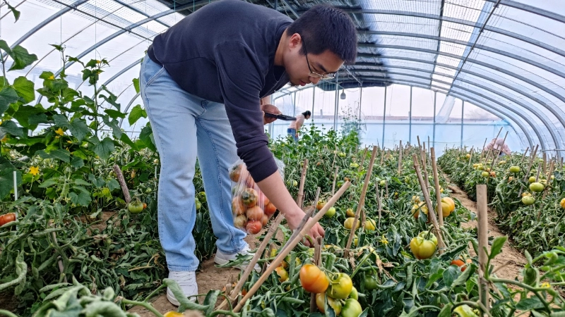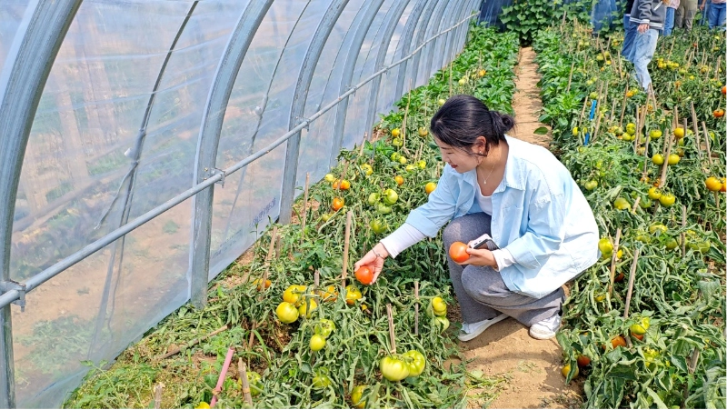 ஆசைக்குப் பிறகு, அது ஒரு வசதியான நேரம். காலை 10:30 மணியளவில், இயற்கையுடன் ஒரு நெருக்கமான சந்திப்பைத் தொடங்க நாங்கள் ஒன்றாக சியாசுவாங் தக்காளி பறிக்கும் தோட்டத்திற்குச் சென்றோம். அது ஒரு தெளிவான நாளாக இருந்தது, வயல்களில் சூரியன் பிரகாசித்தது. பச்சை நிற கிளைகள் மற்றும் இலைகள் பிரகாசமான சிவப்பு 69 தக்காளிகளால் மூடப்பட்டிருந்தன, அவை வட்டமாகவும் குண்டாகவும், பிரகாசமான நிறமாகவும், மக்களை தூரத்திலிருந்து உமிழ்நீராகவும் ஆக்கியது.
