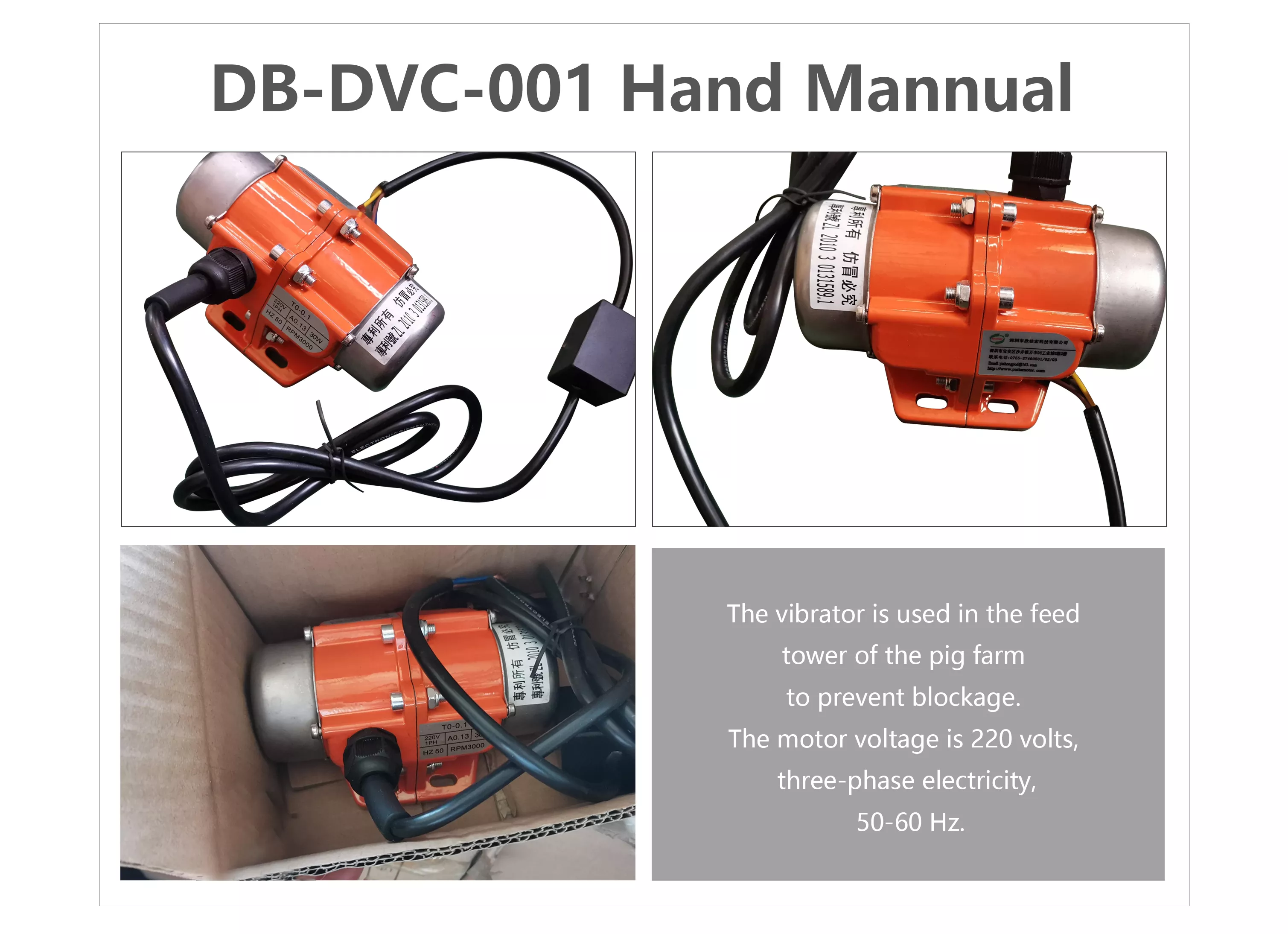 2.பக்கத்தில் தெளிவான அளவுரு லேபிள், குறிக்கும் மாதிரி, மின்னழுத்தம், சக்தி, வேகம் போன்றவை.